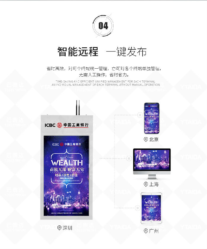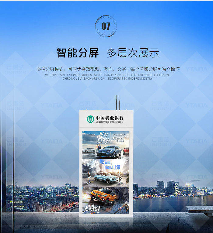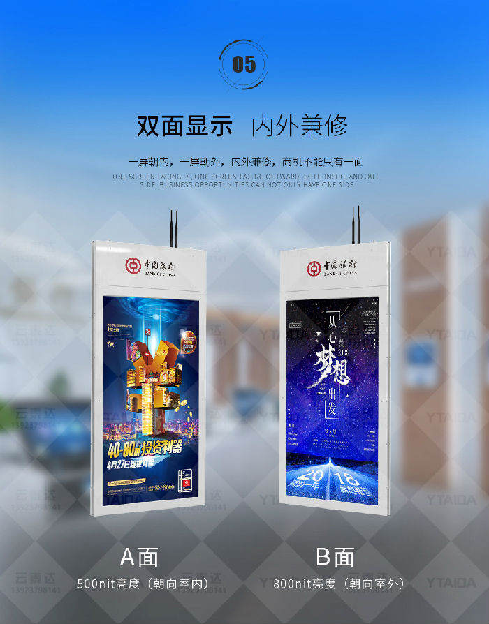 B. 区别于传统的广告宣传设备,独特正反双面,支持同步或异步显示