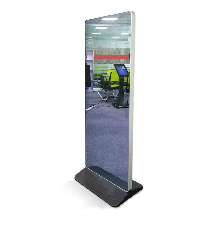 2、镜面广告机它外观简约时尚、 功能亲和实用, 集“高关注”、 “高到达”, “高记忆”,“低干扰”等众多优势于一身,具有其他媒体无法比拟传播优势。